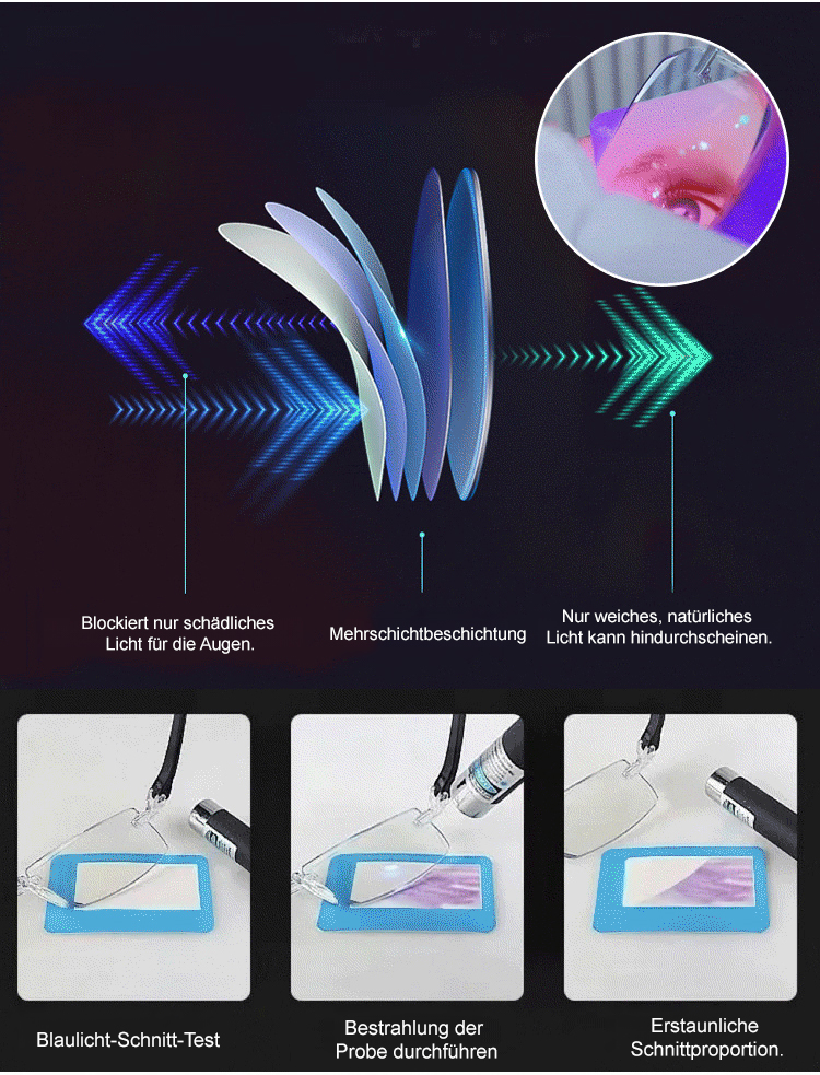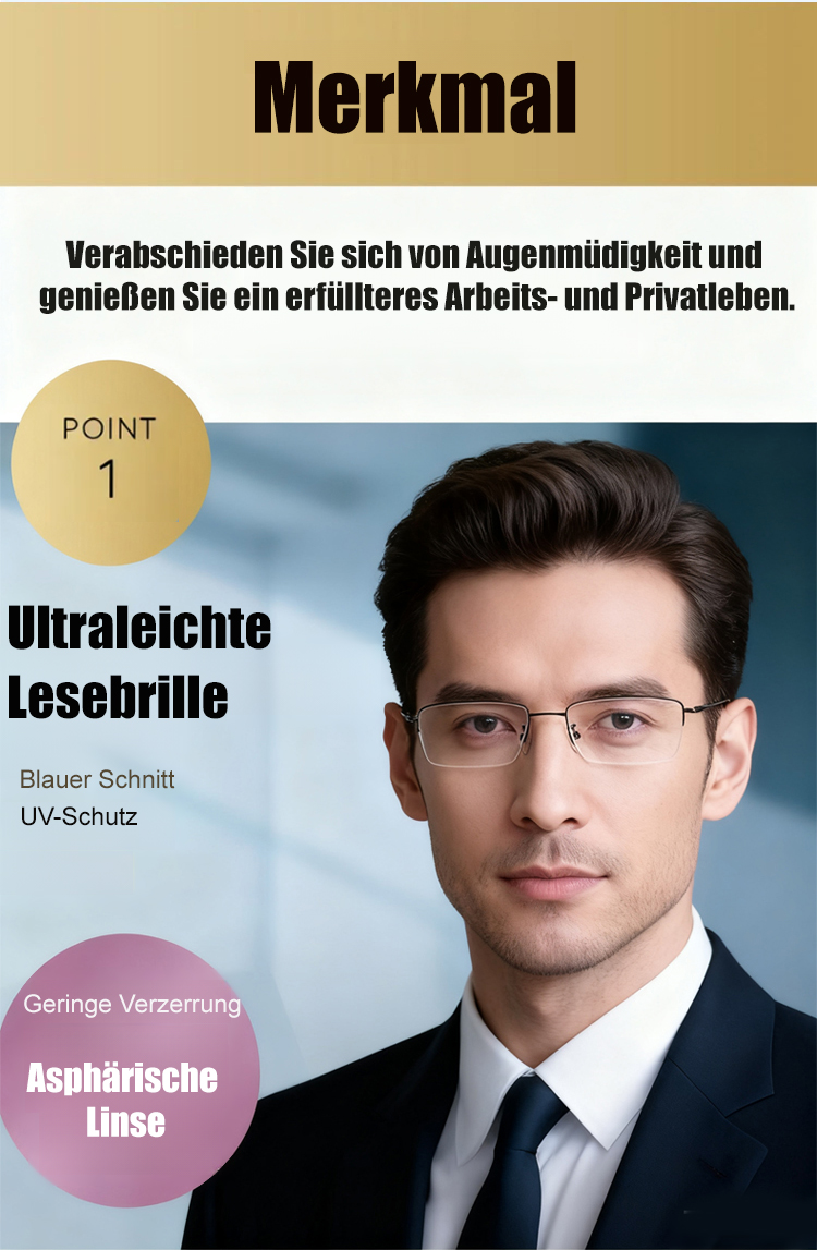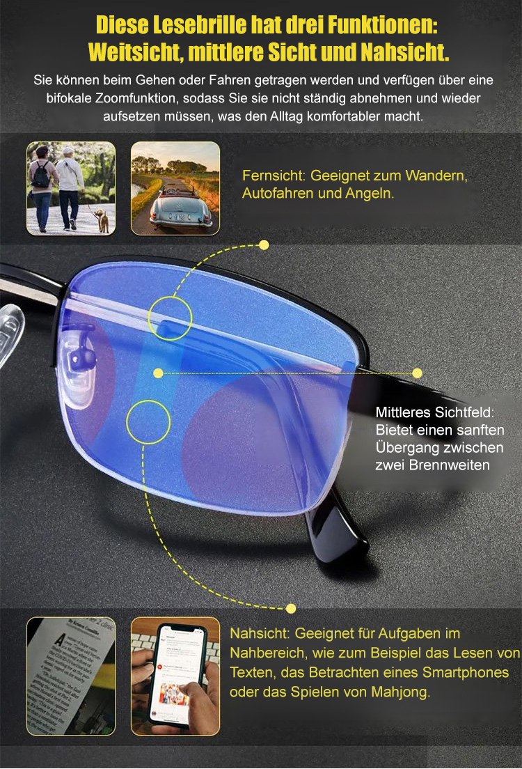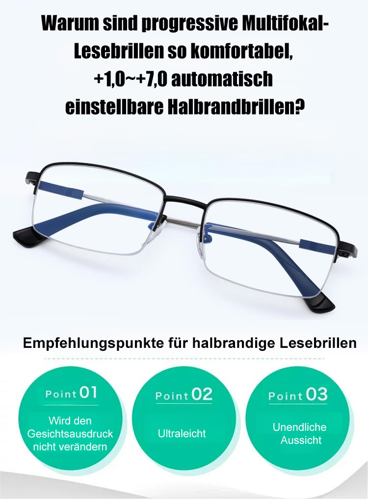 Automatische Anpassung von -2.0 bis +7.0! Dauerhafte Lösung für Weitsichtigkeit und Altersweitsichtigkeit! 【Titan-Gleitsichtbrille】 Lebenslang tragbar, keine neuen Brillen nötig!